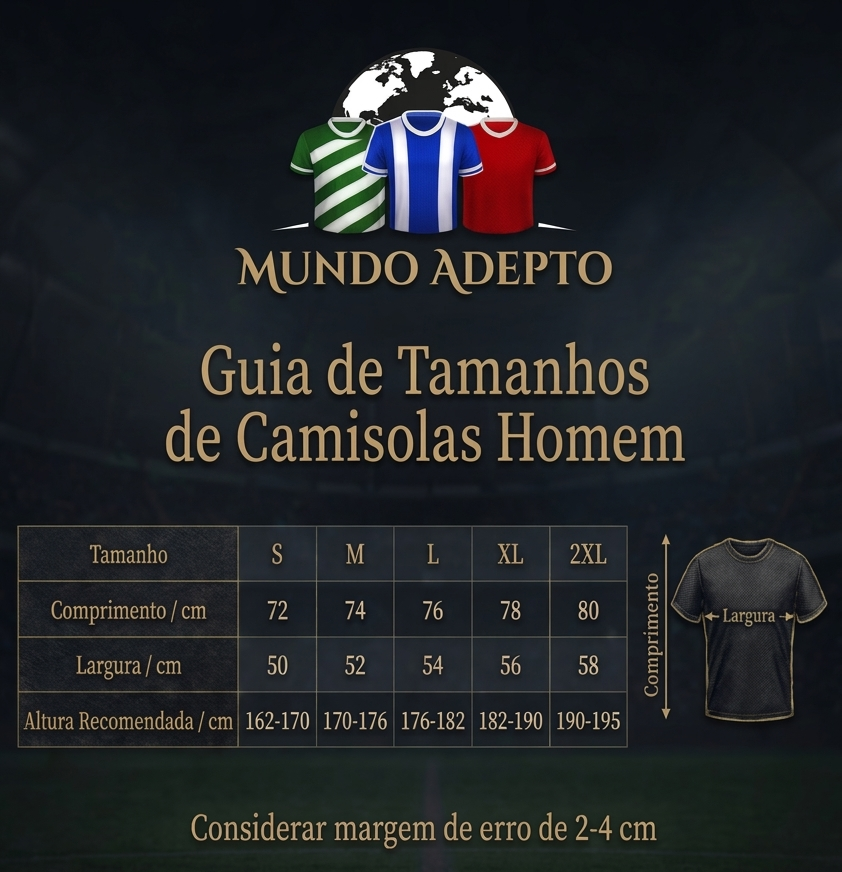 Consulta as medidas antes de finalizar a compra. Se estiveres entre dois tamanhos, recomenda-se o maior.